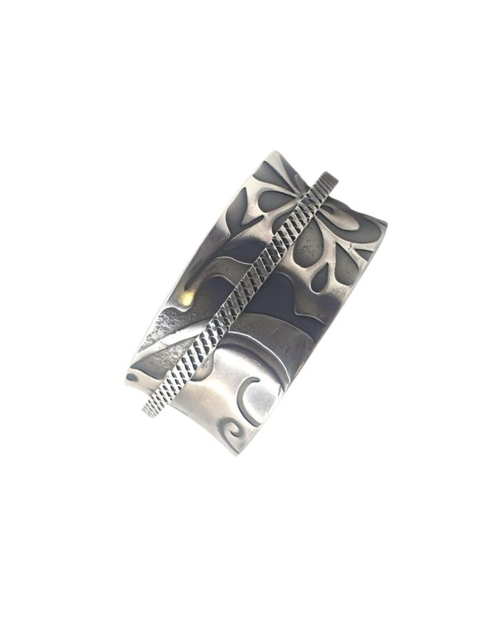 Aus 925er Sterling Silber gefertigt und mit einem zarten Blütenmuster versehen, wurde jeder Ring in liebevoller Handarbeit geprägt und ist somit ein echtes Unikat. Die drehbare Ringschiene lädt zur bewussten Bewegung ein – ideal zum Stressabbau oder zur meditativen Fokussierung.